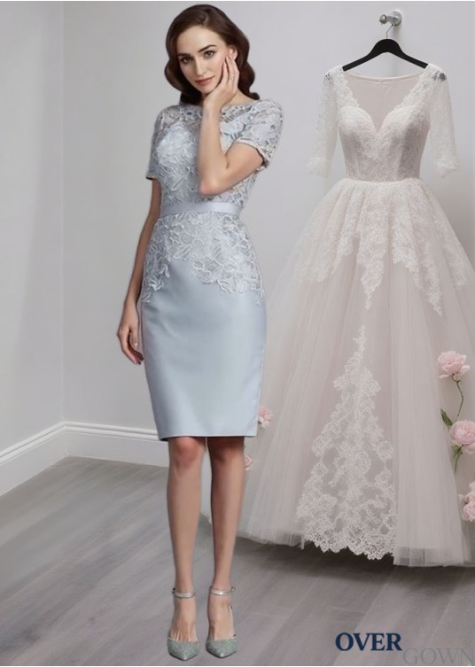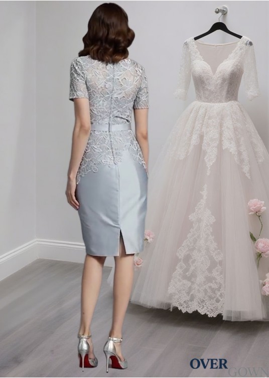 Satin Knee-Length Mother of the Bride Dress with Short Sleeves