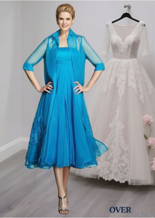Elegant Strapless Organza Knee-Length Mother of the Bride Dress with Applique