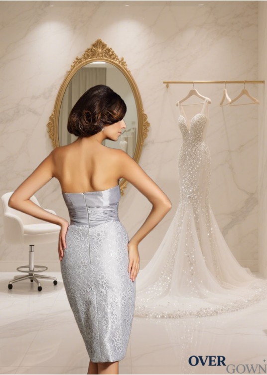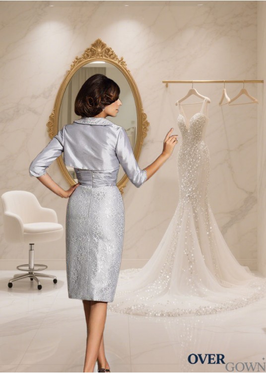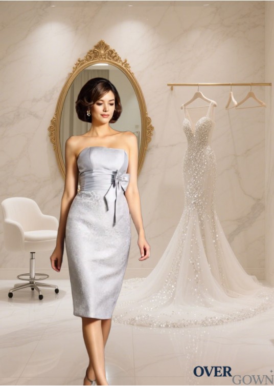 Taffeta Knee-Length Mother of the Bride Dress With Bow - Sheath Gown with Empire Waist