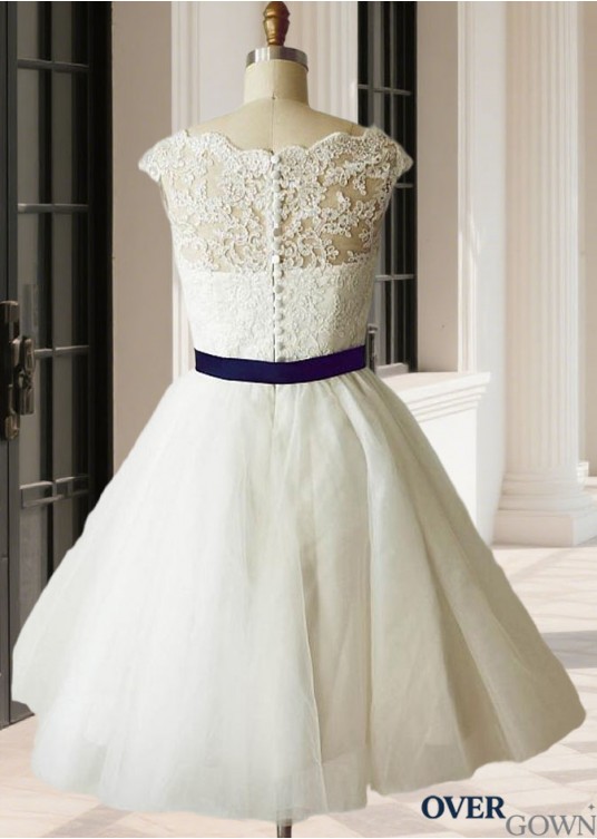 A-Line Lace Tulle Mini Wedding Dress with Cap Sleeves