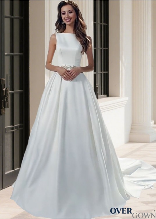 Elegant Sleeveless Bateau Neck Full Length Wedding Dress