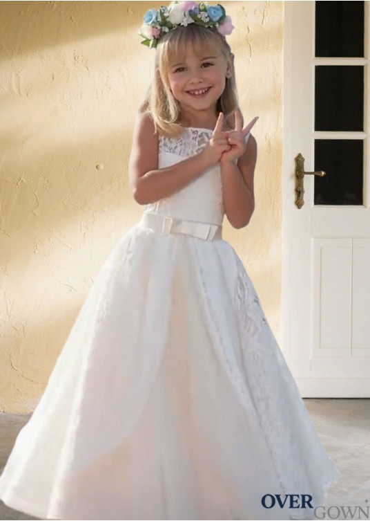 Lace Flower Girl Dress | A Line Floor Length Wedding Dress for Girls