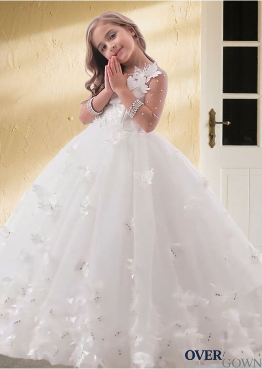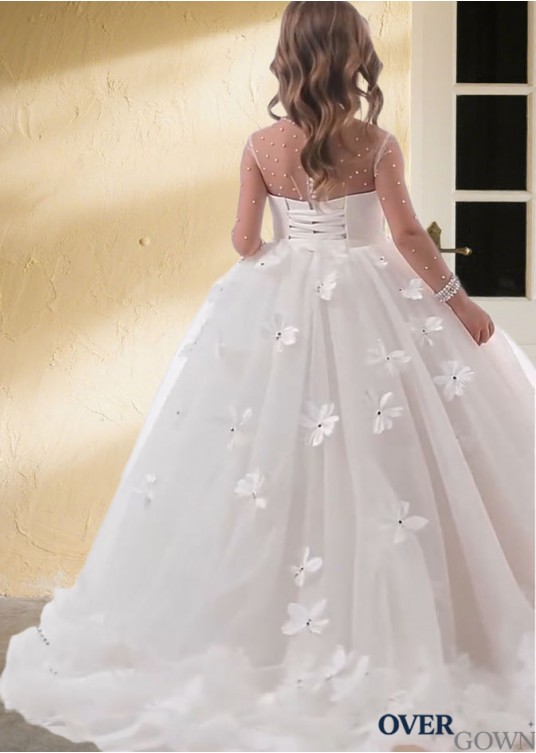 White Tulle & Lace Ball Gown Flower Girl Dress – Elegant Wedding Outfit